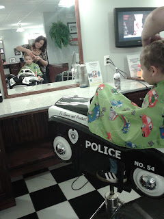 Now that his curls are gone, we finally conceded it was time for Gavin to get a big boy haircut. I wasn't nearly as sentimental about it as I thought I would be. Although he definitely looks older with shorter hair, I didn't get overly emotional about seeing my baby boy look so grown up. I suppose that's because it's hard to think of him as a baby when he's such a bruiser! Regardless of whether his hair is long or short, curly or straight, we think he's handsome no matter what!